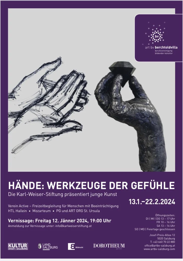 Die Karl Weiser Stiftung präsentiert junge Kunst zum Thema: “Hände Werkzeuge der Gefühle” Ausstellung in der Berchtoldvilla von 13.01.-22.02.2024